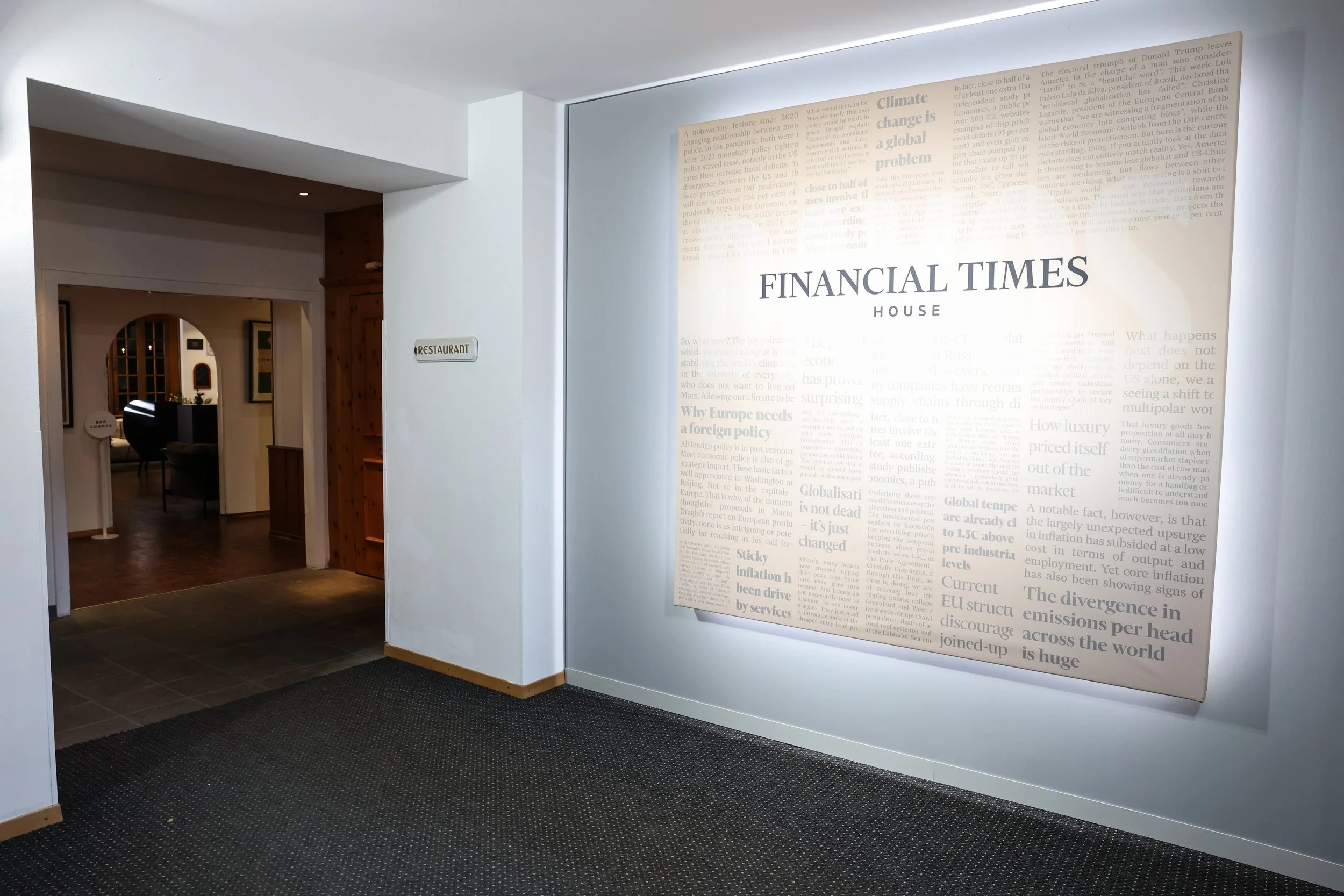 The work received positive feedback from both visitors and senior stakeholders, elevating the perceived quality and premium feel of the FT House experience at Davos.