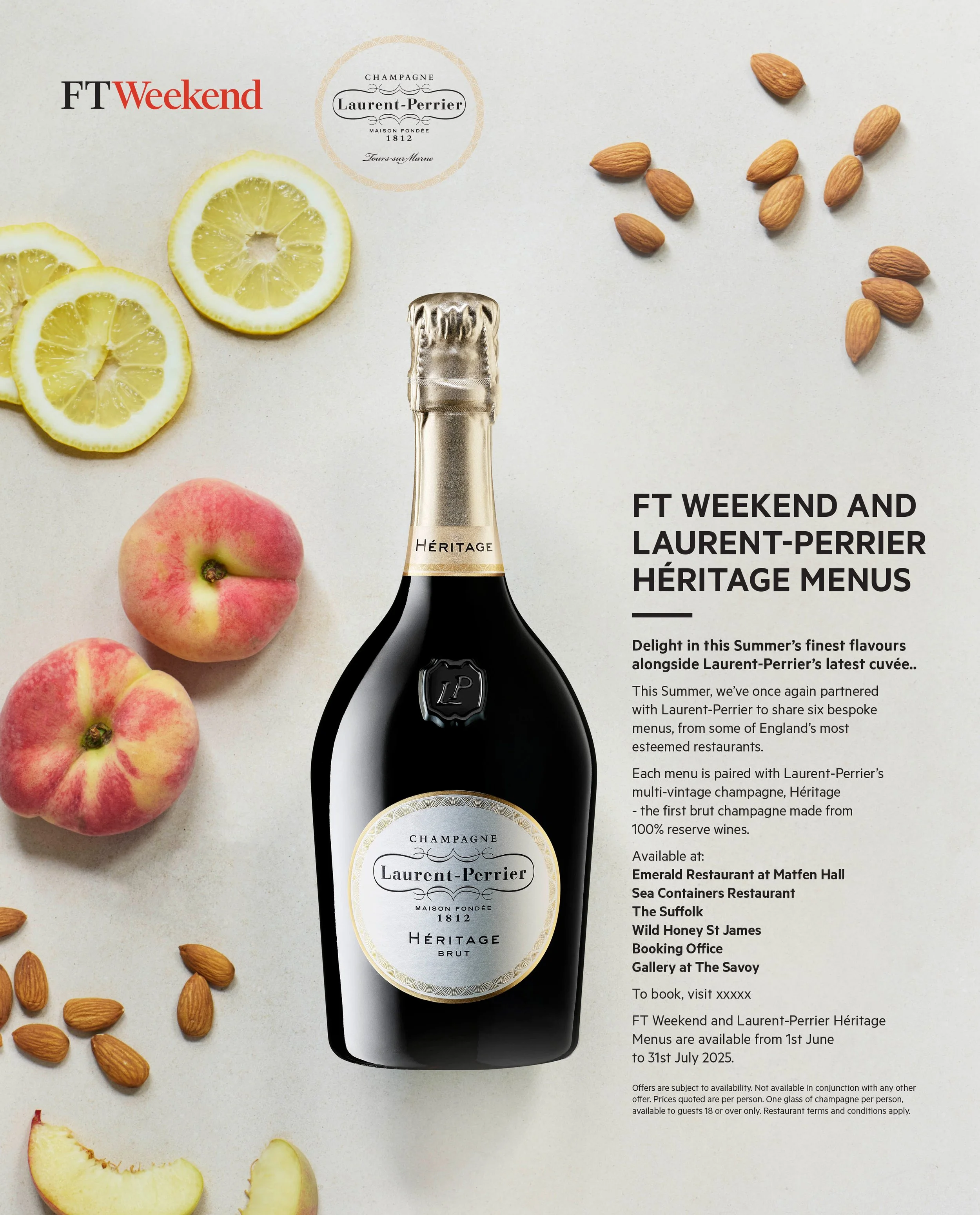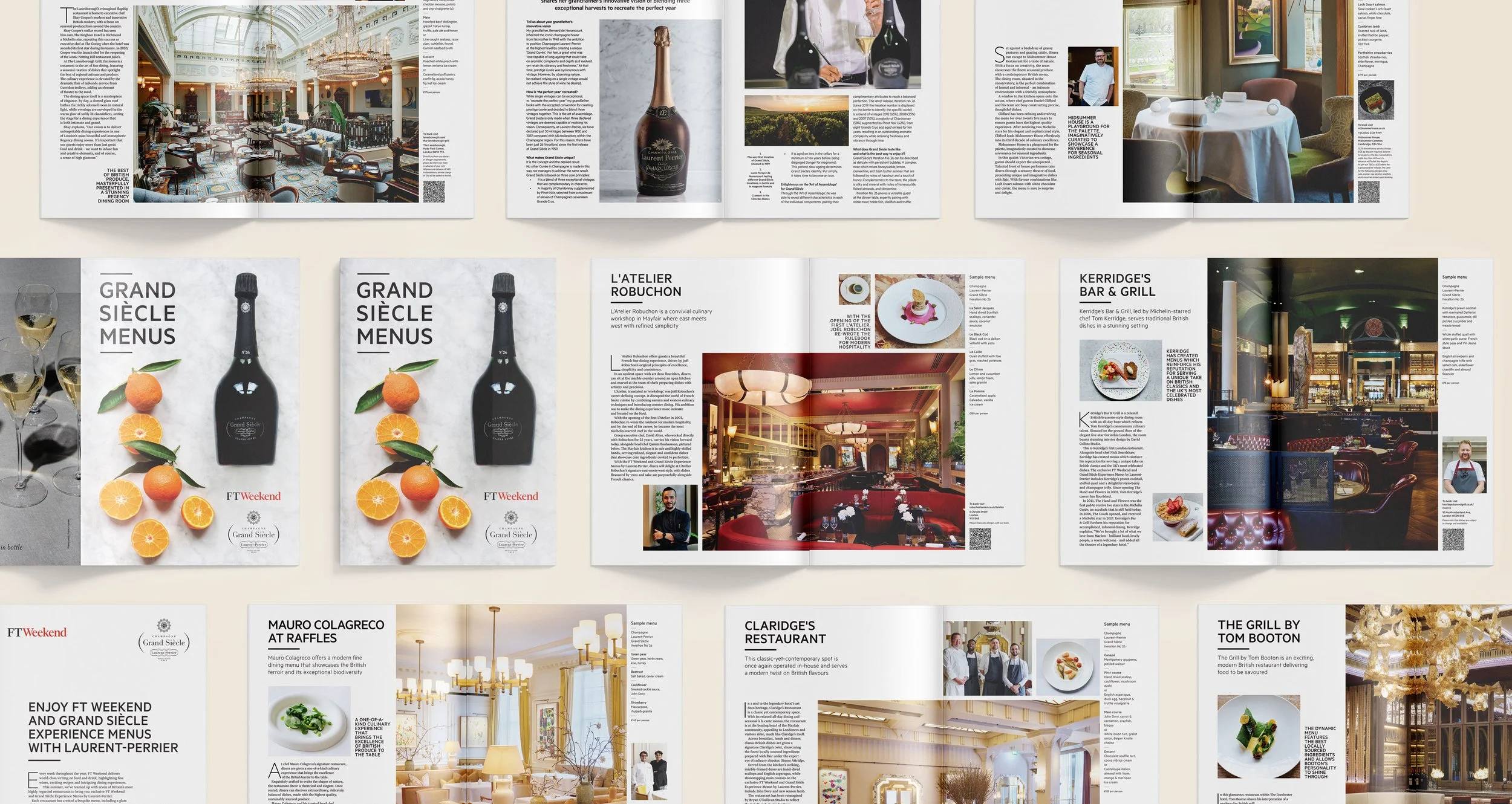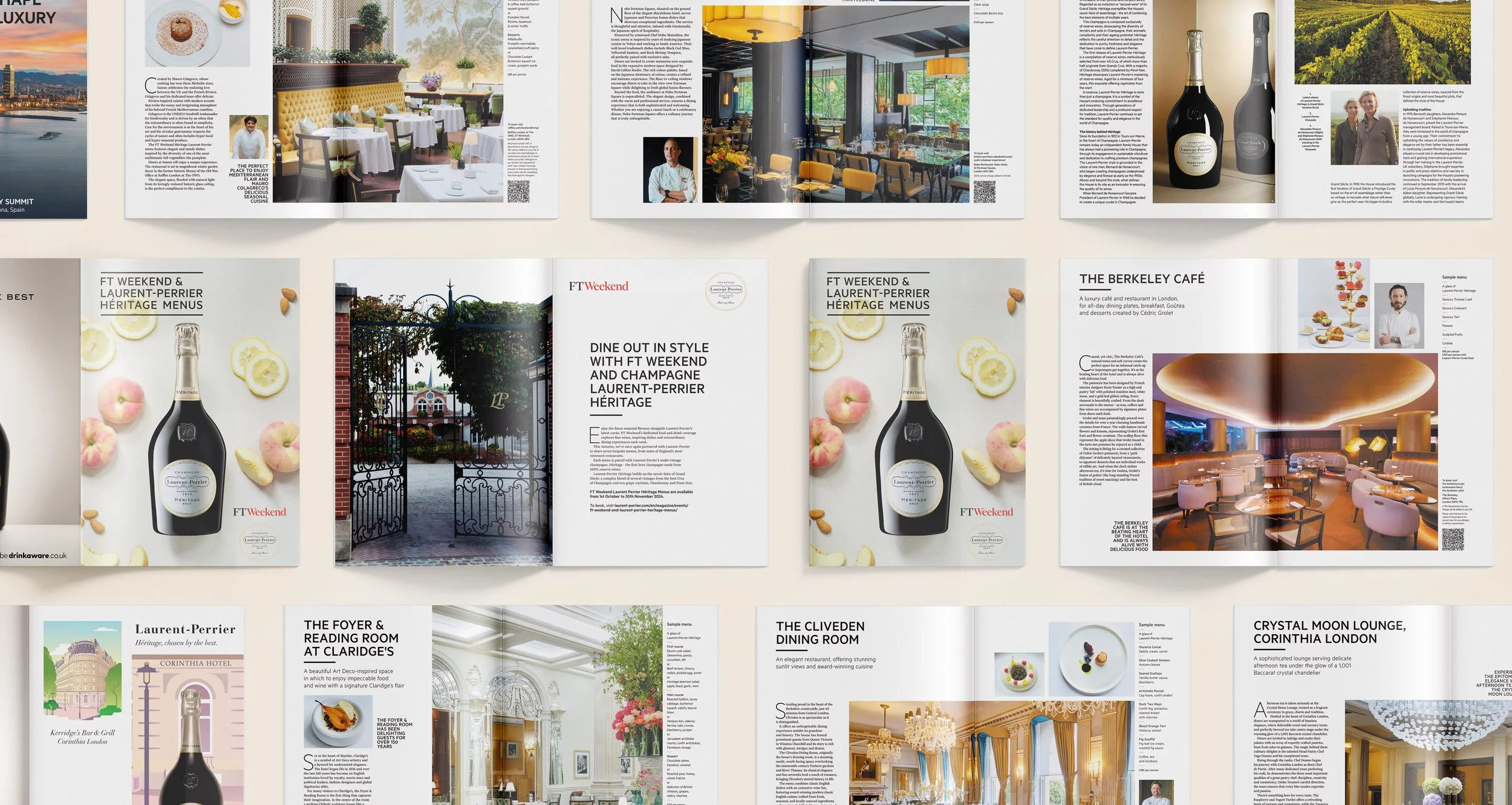 Led the design of a recurring editorial insert and digital campaign for FT Weekend, promoting a series of restaurants offering set menus paired with Laurent-Perrier champagne. Across three years, I designed the booklet, created print and digital ads, and supported art direction on the campaign photoshoot.